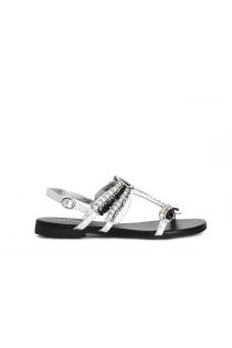 Sandals with dragonfly-shaped applications. lining and insole are in leather. the heel is 2 cm high. comfortable to wear and easy to match.