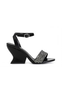 Sandals with rhinestone band and buckled ankle strap. the 80mm-high wedge heel is original and comfortable.