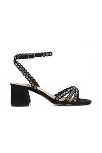 Sandals with rhinestones. medium heels. adjustable ankle strap and buckle.