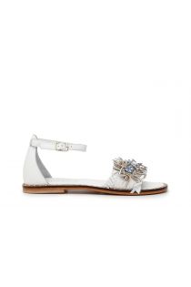 Sandals with soft ruched nappa leather band and covered leather wedge with California construction method