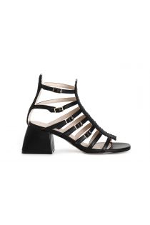 Cage sandals in woven nappa with straps and buckles. the insole is in leather. shoe that can be worn all day thanks to the 6.3 cm high wide-based heel and the comfortable support base.