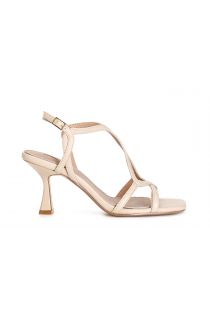 Sandals with "t" pattern. the insole is in leather. shoe with a slightly square shape. the spool heel is 7 cm high.