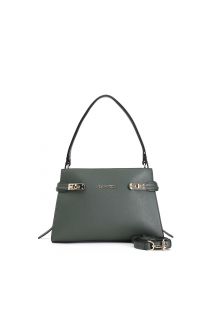 satchel in cork effect material with metal closures green