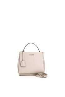 Small semi-rigid leather bowling bag with accessory and optional shoulder strap.