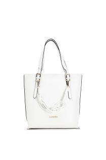 semi-rigid shopping bag with metal buckles and soft chain cream
