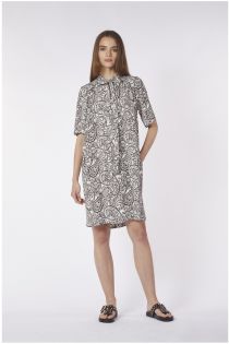 Loose-fitting viscose muslin dress with cashmere print and neck sash.