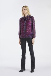 Romantic and feminine shirt with sash collar in printed fil coupé