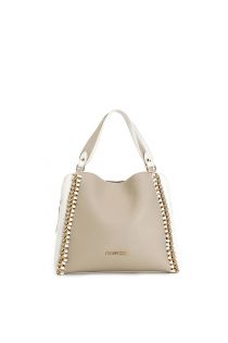 Shopper in hammered material with chain and thread. automatic magnetic closure. zipped partition.
