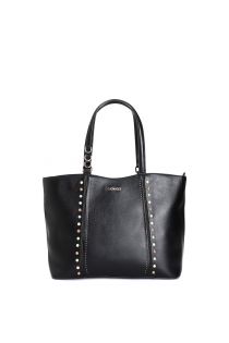shopping bag with cabochon stones, rivets and elegant padded handles black