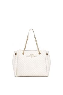 Shopping bag with small diamond quilting and chain handle with shoulder strap. cafènoir logo charm.