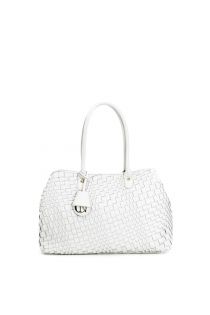 Shopping bag with irregular weave double opening tubular handles and pendant with cafènoir customisation.