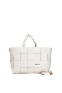 Shopping bag with large lightly padded weave zip fastening soft handles to carry it on the shoulder and crossbody strap included.