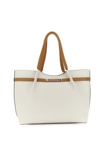 Elegant shopping bag with grained leather-effect pleats smooth faux leather trim and braided handles. roomy and versatile with a metal lettering logo. ideal for everyday and office wear. dimensions: 42 cm (length) × 28 cm (height) × 14 cm (depth)