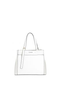 shopping bag with threading pattern and adjustable shoulder strap with buckle white