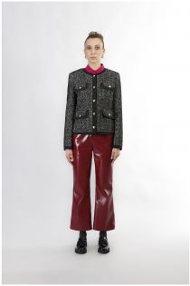 Short single-breasted coat with crew neck. made of herringbone fabric with contrasting edges and gold buttons. perfect for an elegant look.