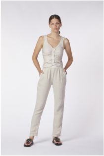 short top with front placket and side gathers cord