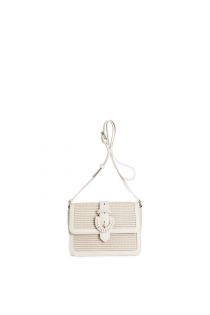Straw shoulder bag with flap decorated with buckle and covered buckle woven loop adjustable shoulder strap with buckle. refined and natural style.