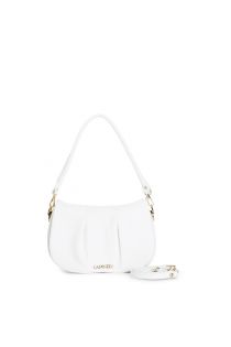 Shoulder bag with flap with pleats on the front. short tubular shoulder strap and removable shoulder strap.