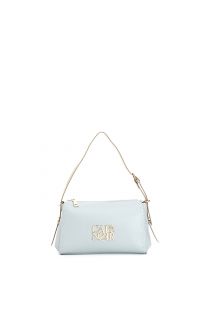 Shoulder bag with mirror material details maxi logo and stitching. bag equipped with a handy compartment an inner zipped pocket and a mobile phone pocket. zip fastener.
