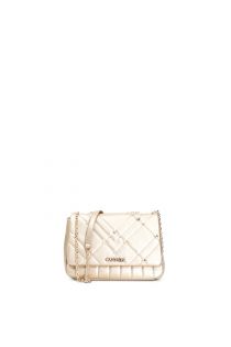 Shoulder bag with flap and quilting embellished with pyramidal studs where the sections meet. It can also be worn over the shoulder by extending the chain