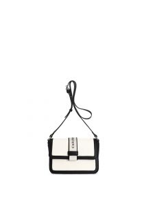 Shoulder bag with flap in natural canvas contrasting profiles. logos in plastic material and adjustable shoulder strap. open back pocket and enamelled logo rivets.