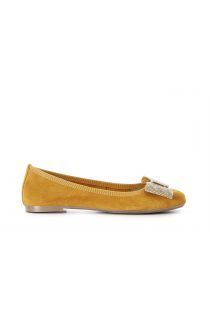 single-colour suede ballet flat with rhinestone-studded bow yellow
