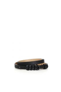 skinny belt with O-ring buckle, logo plate on the end
