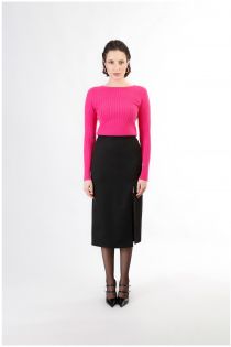 Midi skirt made of polyviscose fabric. the skirt has a significant side slit with a decorative oblique zip.