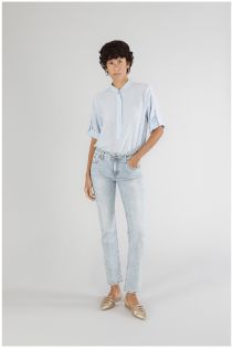 Audrey style jeans with a slim fit. made of superstretch canvas. the garment is designed to wrap the figure and enhance the shape. five pockets classic closure and belt loops.