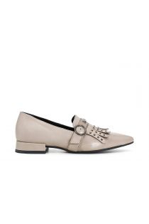 Slim shaped Napa leather ballet flats with fringe enriched with studs