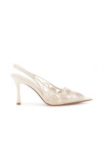 Elegant slingback pump with cornely embroidery featuring spiral motifs that wrap around the tapered toe. the 8.5 cm spool heel lends a sleek feminine touch. perfect for formal occasions and sophisticated looks.