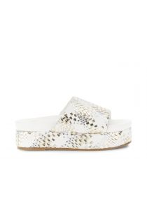 Platform slipper sandals with a woven leather effect in white gold and silver or multicolored gold bronze and platinum. a high lightweight sole wide strap and the perfect comfort for bright summer looks. a 3.5 cm sole. perfect for adding a touch of chic to your everyday style.