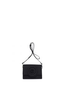 Small bag in matt-effect material flap with high-frequency logo and optional shoulder strap.