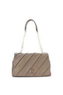 smooth leather effect flap with chain and pleats mud