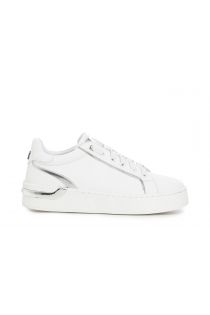 Sneakers in animal print leather with metal hardware decorating the laces and box sole with metallic insert.