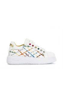 sneakers with embroidery and coloured rhinestones white combo