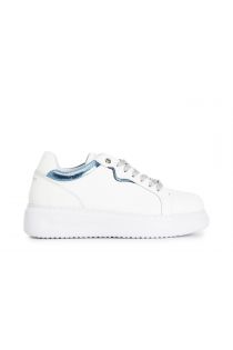 sneakers with patent appliqués white/turquoise