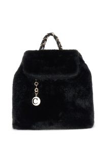 soft backpack with fur and chain detail black