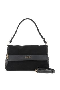 Soft bag with a suede-effect flap, zip lettering, and metal charm. Removable shoulder strap and chic design for a feminine and contemporary style.