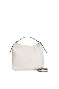 soft boho bag with embossed cafènoir logo with centre seam ivory