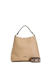soft boho bag with rows of faceted studs and single handle hazelnut