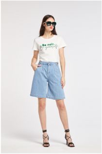 Regular-fit denim shorts in soft canvas. custom plates on the skinny belt