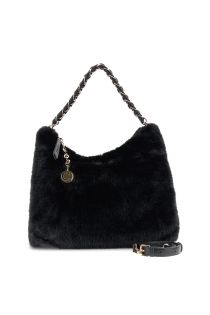 soft faux fur bag with shoulder strap black