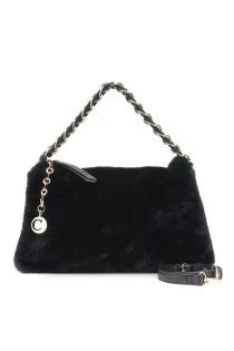 Soft faux fur shoulder bag with a tucked chain shoulder strap and a metal Cafènoir logo charm. Includes a removable shoulder strap for a dual style.