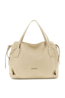 soft grainy leather-effect shopping bag with metal rivet applications beige