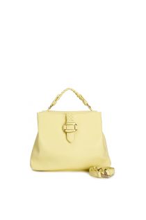 soft handbag with braided handle, buckle and removable shoulder strap. yellow