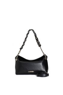 Soft shoulder bag with flap chain shoulder strap with threading braided shoulder strap metal eyelets and removable shoulder strap. elegance and versatility guaranteed.
