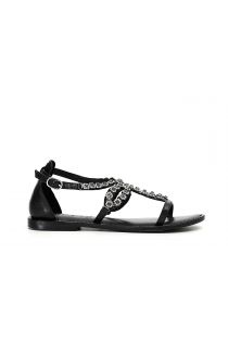 Special Price: Leather low-heeled sandals with rhinestone flower