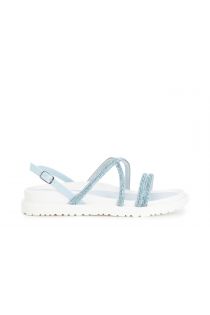 Asymmetric sandals with four rhinestone-clad straps leather insole on comfortable footbed.