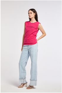 Stretch cotton sleeveless top with printed logo and buttons on the shoulders